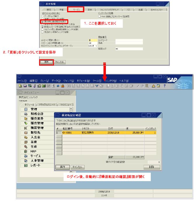 (3) ログイン時に本日実行する必要のある繰返転記を表示-設定-