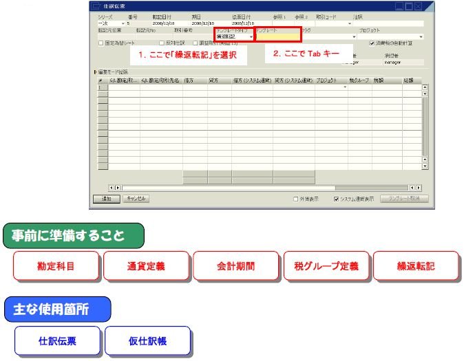 (4) 繰返転記を使用した仕訳伝票入力-トランザクション-
