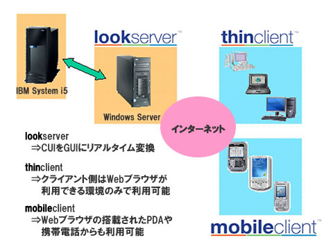 モバイル端末からlookserver経由でIBM Power Systems (AS/400) アプリケーションを利用します。