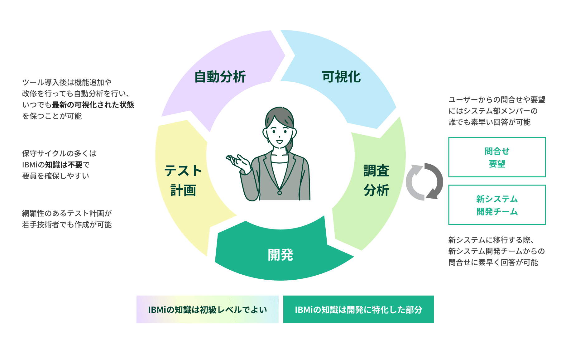 ツールを利用した網羅的な可視化機能と強力な影響分析機能により、システムのブラックボックス化へ対応。